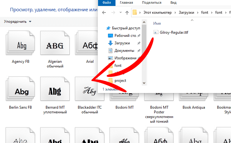 - Перетащите ваш шрифт в открытую вкладку со шрифтами