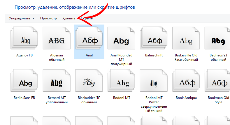 Тут же вы можете удалить ненужный шрифт, для этого нужно его выбрать и нажать “Удалить”.
