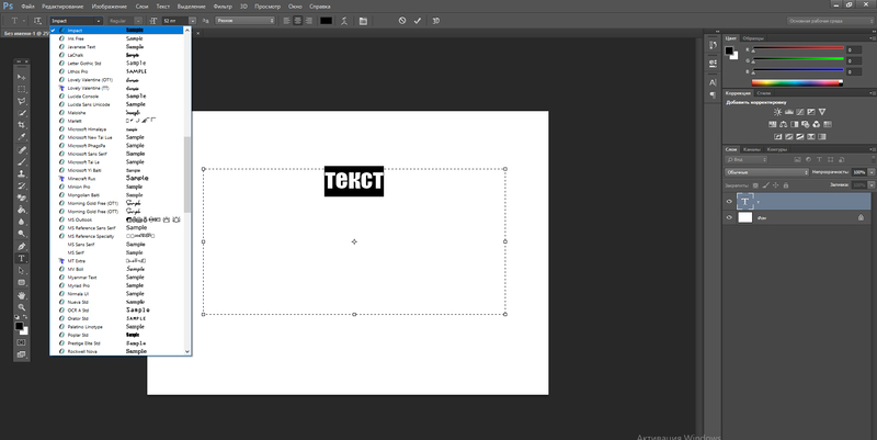 - Набираем нужный текст и подбираем подходящий для него шрифт.
