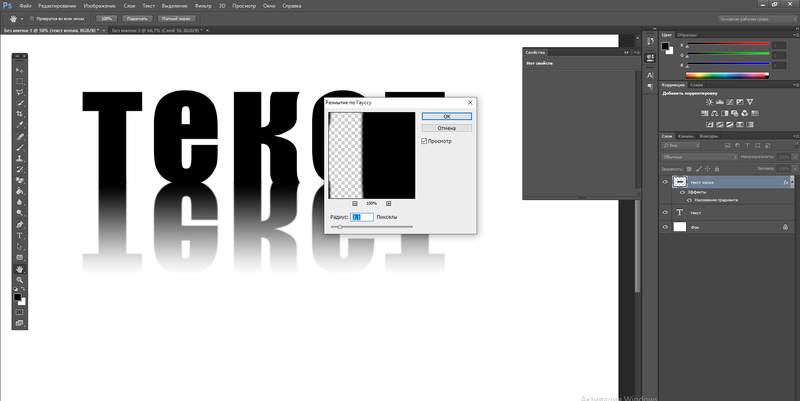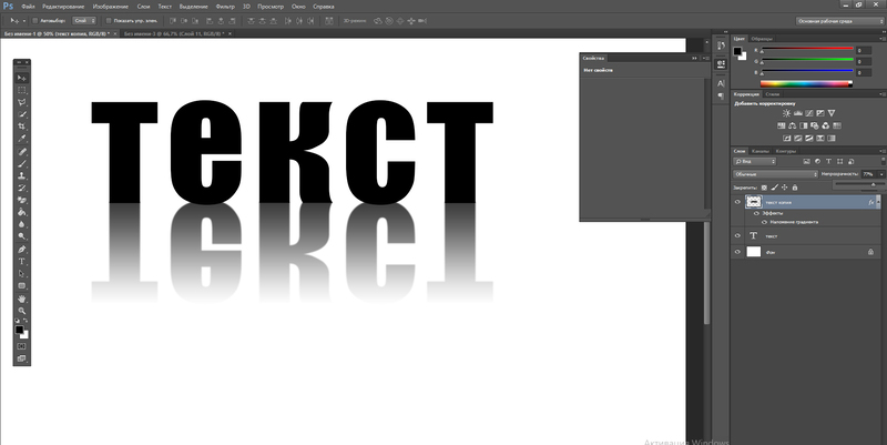 - Для получения зеркального отражения надписи необходимо выбрать в панели инструментов «Текст».