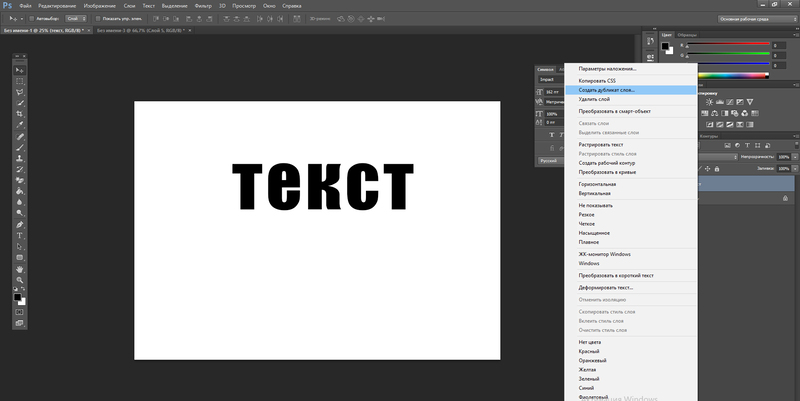 - Створюємо дублікат шару з текстом, клацнувши правою кнопкою миші.